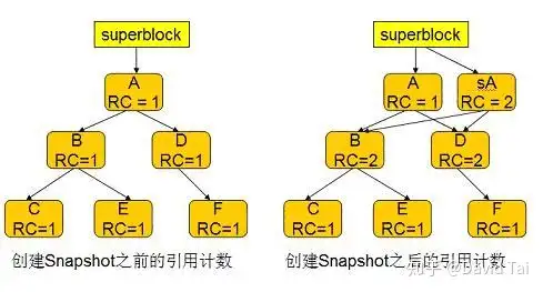 Btrfs 支持 snapshot 和 clone 。这个特性极大地增加了 btrfs 的使用范围,用户不需要购买和安装昂贵并且使用复杂的卷管理软件。下面简要介绍一下 btrfs 实现快照的基本原理。
