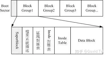 图 4 显示了 ext2 的磁盘布局: